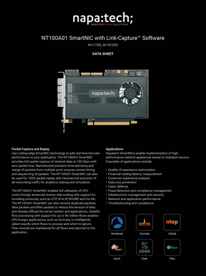 Napatech marketing collateral for hardware, software and solutions.